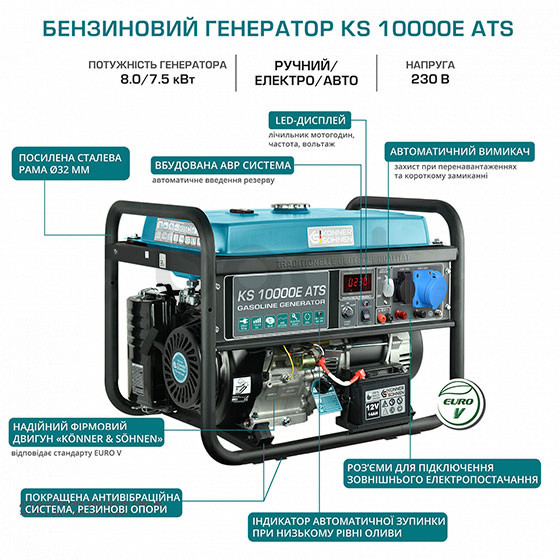 Питання/відповіді про товар Генератор бензиновий Konner&Sohnen KS 10000E-3 ATS