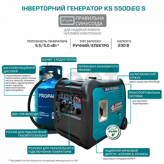 Питання/відповіді про товар Генератор інверторний Konner&Sohnen KS 5500iEG S