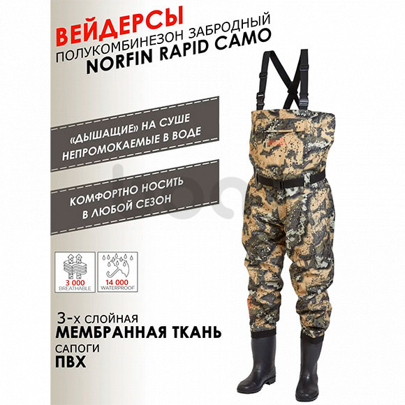 Напівкомбінезон забродний Norfin Rapid Camo (чоботи) р.43