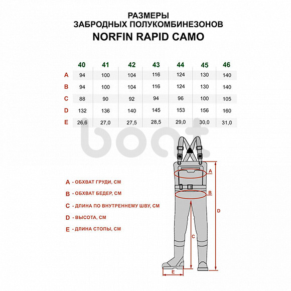 Напівкомбінезон забродний Norfin Rapid Camo (чоботи) р.46